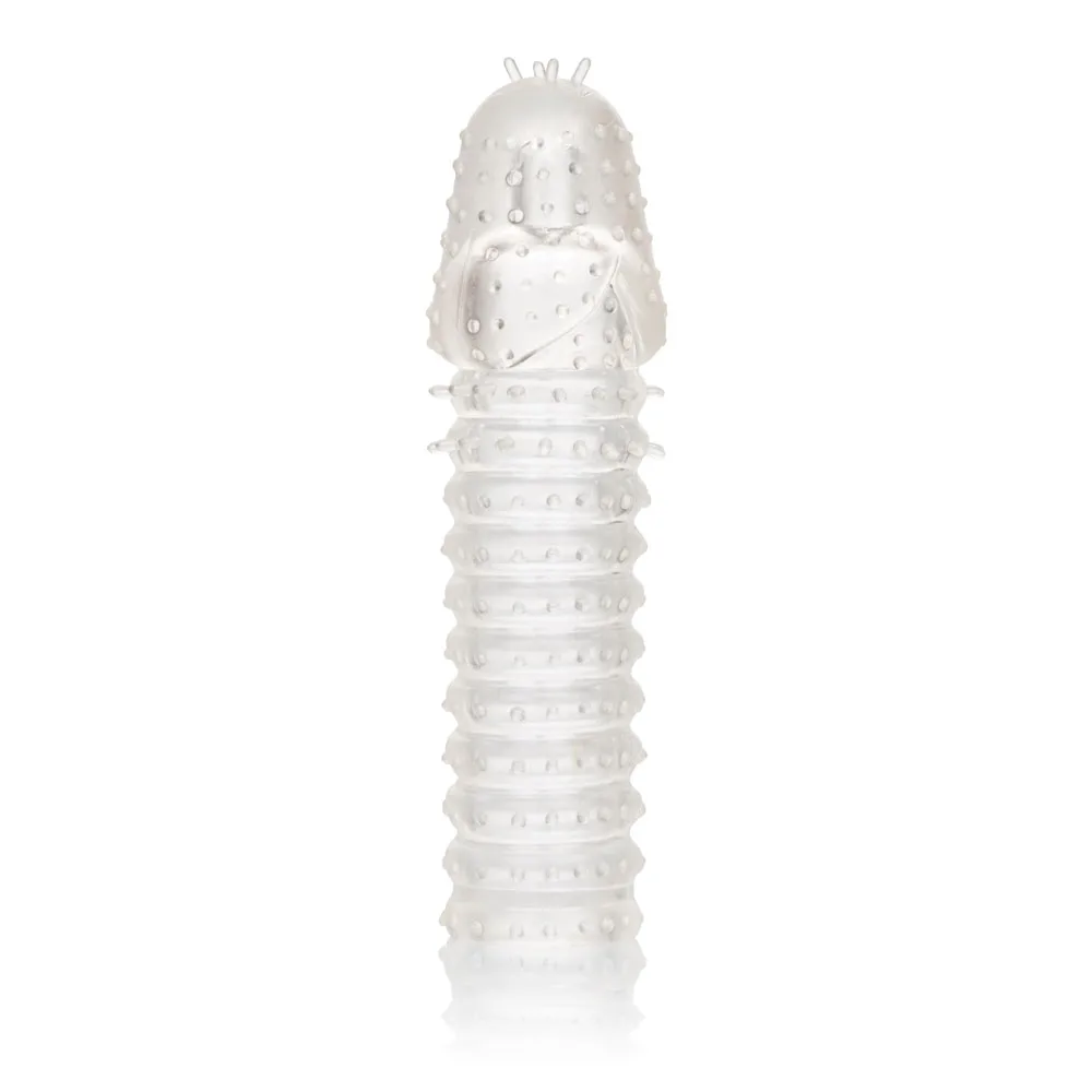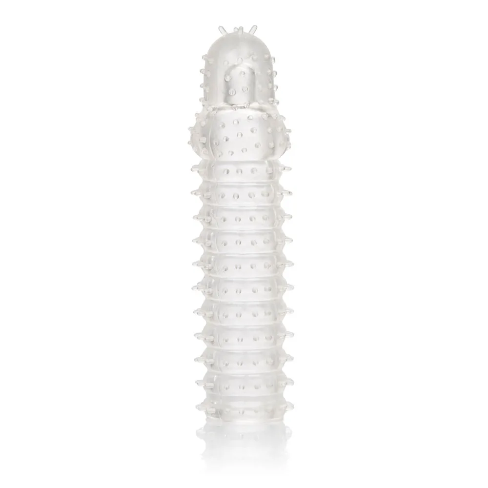 While you thrill your lover with increased girth and stimulating ticklers, the fulfilling enhancers powerful erection support and textured chamber result in explosive results for both of you. The textured chamber and erection enhancer provide increase stimulation and powerful support. Wrap your pleasure tool in this super stretchy sleeve to easily increase stamina, stimulation and orgasmic pleasure.