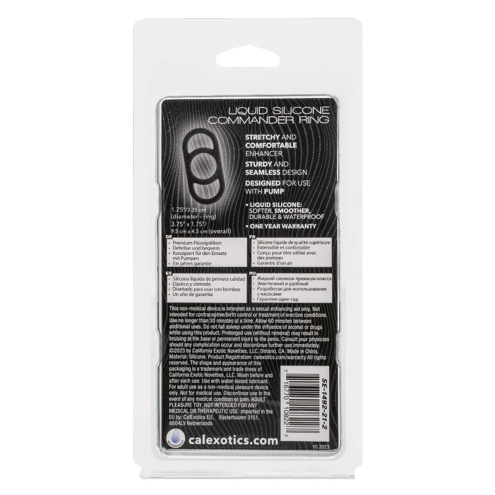 Engineered for compatibility with a pump, the Commander Ring presents a unique fusion of functionality and sensual delight. Its seamless and smooth design offers unparalleled comfort and a secure fit. Made from Liquid Silicone, this ring stands out for its exceptional qualities: softer, smoother, and more robust, providing a sumptuous touch that is easy to use.