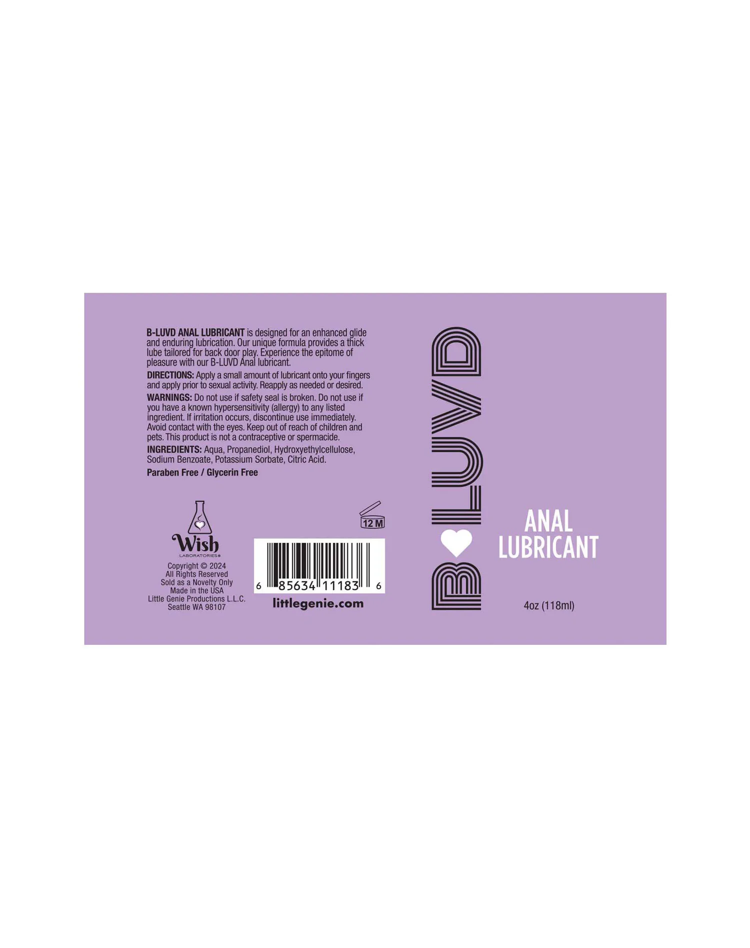 B-Luvd Anal Lubricant presents a meticulously formulated water-based gel designed to enhance anal intimate experiences. This product offers a smooth, silky texture that ensures optimal comfort and satisfaction during use. The carefully crafted stay-put formula provides extended lubrication, allowing for prolonged enjoyment.