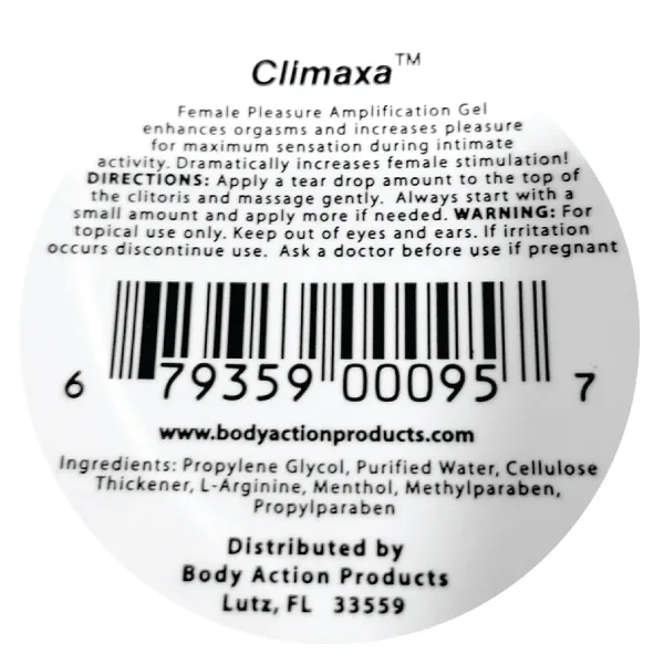 Climaxa Female Stimulating Gel enhances orgasms and increases pleasure for maximum sensation during intimate activity. Dramatically increases female stimulation.
