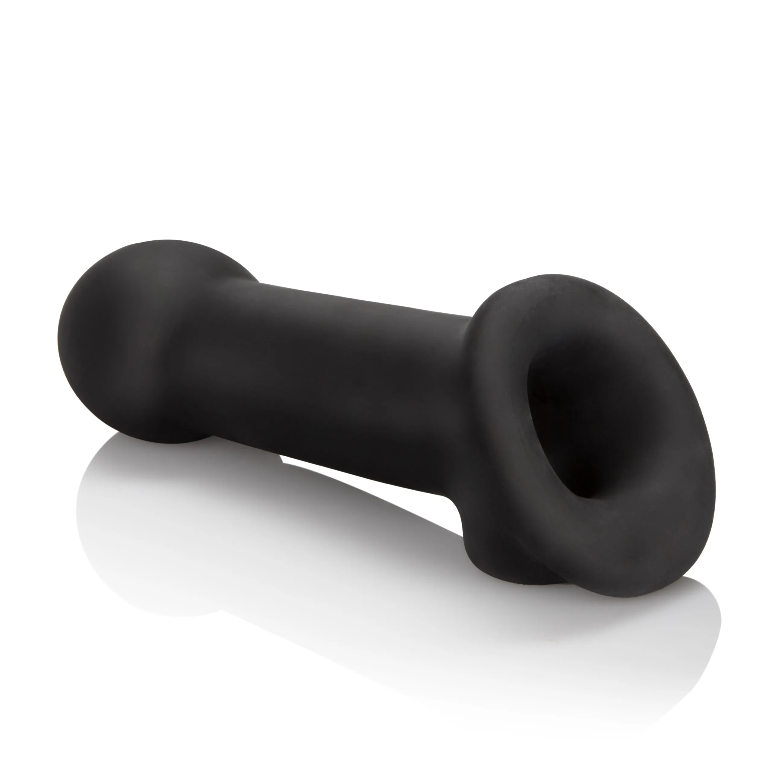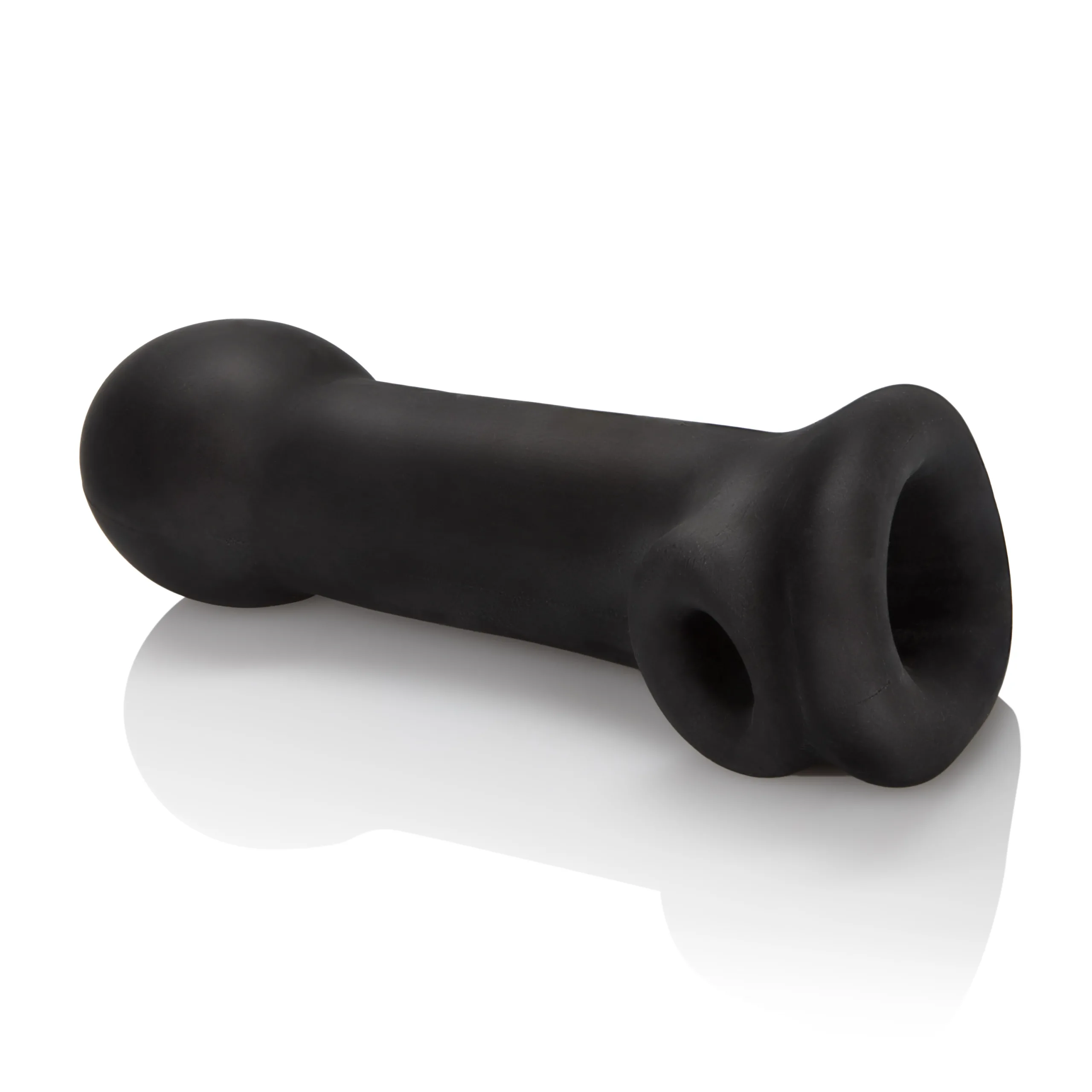 Soft and stretchy extension sleeve with built in scrotum support strap. Plushy soft PureSkin material feels like the real thing. Textured inner chamber for added stimulation. Stretches to fit the biggest man.