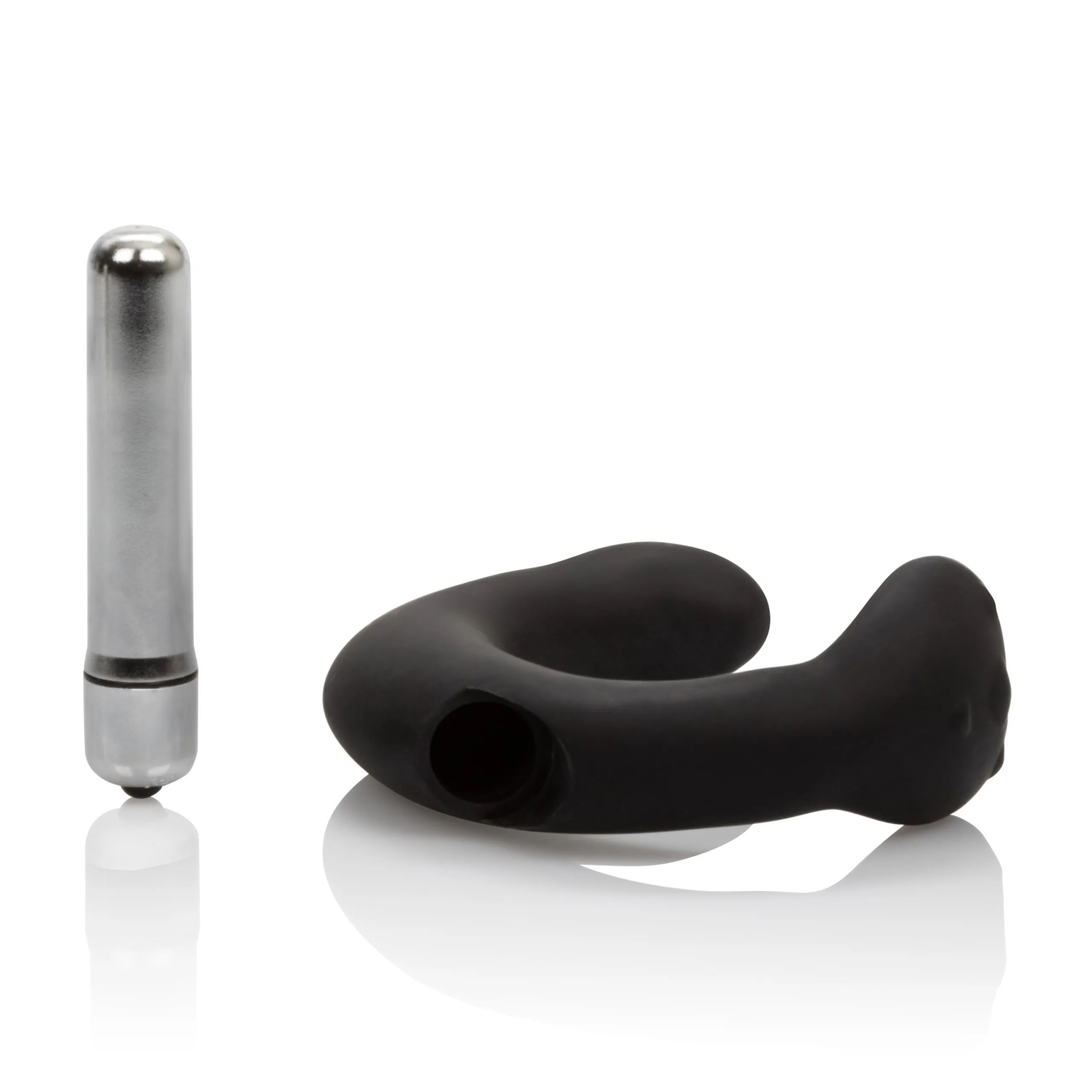 The perfect angle for prostate and testicular stimulation. High powered stimulator with push button activation. Soft and pliable