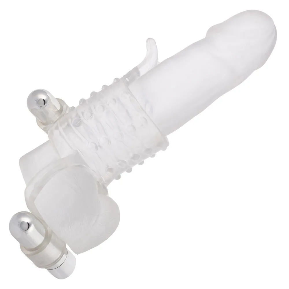 Thicker and bigger is better. Versatile stretchy ribbed enhancer adds girth and support for him Pleasure nubbies and dual ticklers add incredible stimulation for her 2 powerful removable vibrating bullets with push button control