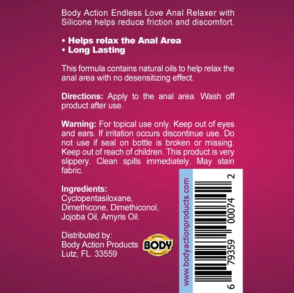 Endless Love Anal Relaxing Silicone Lubricant helps ease those intimate moments. This formula contains natural oils to help either partner.
