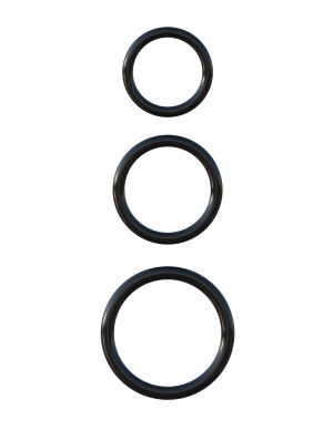 When youre looking for the ultimate beginners cock ring kit, the Silicone 3-Ring Stamina Set is the proven choice for rock-hard erections that last and last! With three super-stretchy silicone rings to choose from, this trio is the perfect assortment to help you achieve your maximum potential! Made from our phthalate-free, body-safe Elite Silicone, the three performance rings range from 1.25in (3.2cm) to 2in (5.1cm). Find the perfect size for you and put it around the base of your shaft to gently restrict blood flow and help you achieve the biggest and most intense erections ever imagined! The rings tight squeeze will put a clamp on performance letdowns and make a stud out of any man! Try the rings in different combinations to find the most explosive results! Use all three rings at the same time for the ultimate stamina test. Cleanup is a snap after the fun with toy cleaner and warm water. Use plenty of Moist for an extra wet and wild encounter!
