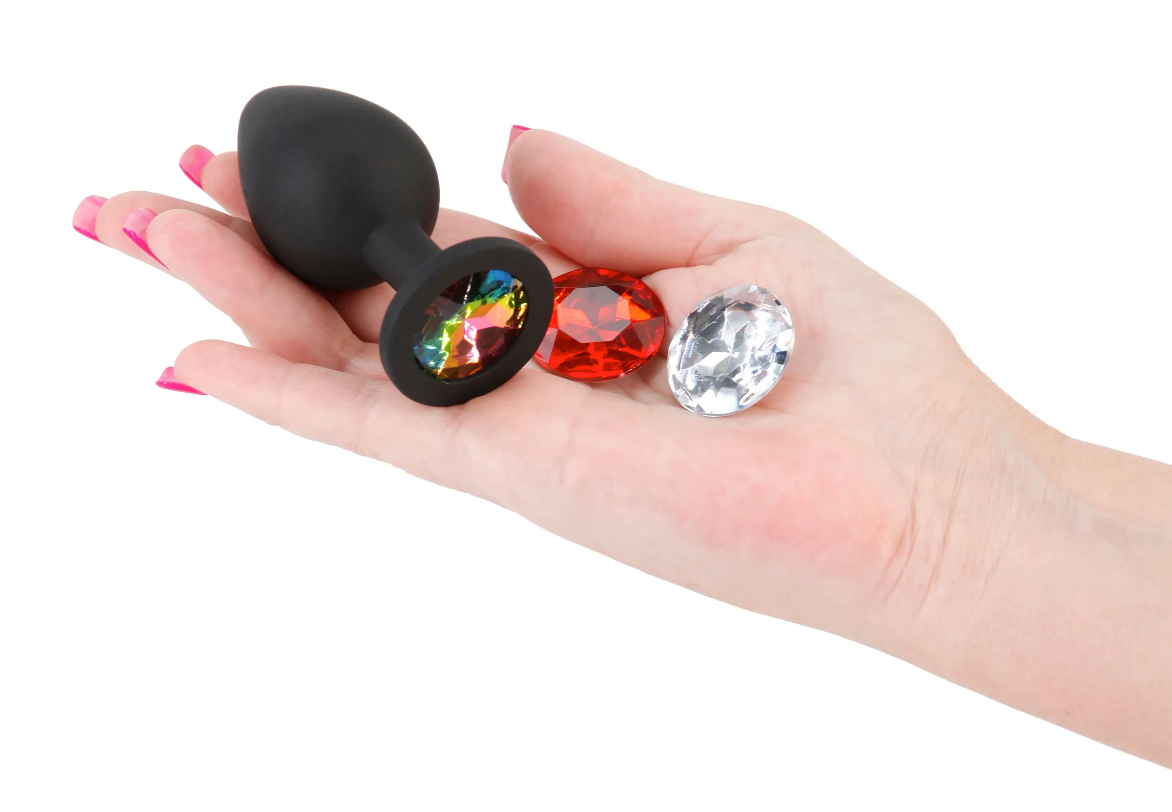 Match your mood and your booty with Glams Xchange. A fashionable accessory to entice and romance. Made from premium grade silicone featuring three interchangeable colorful gems.