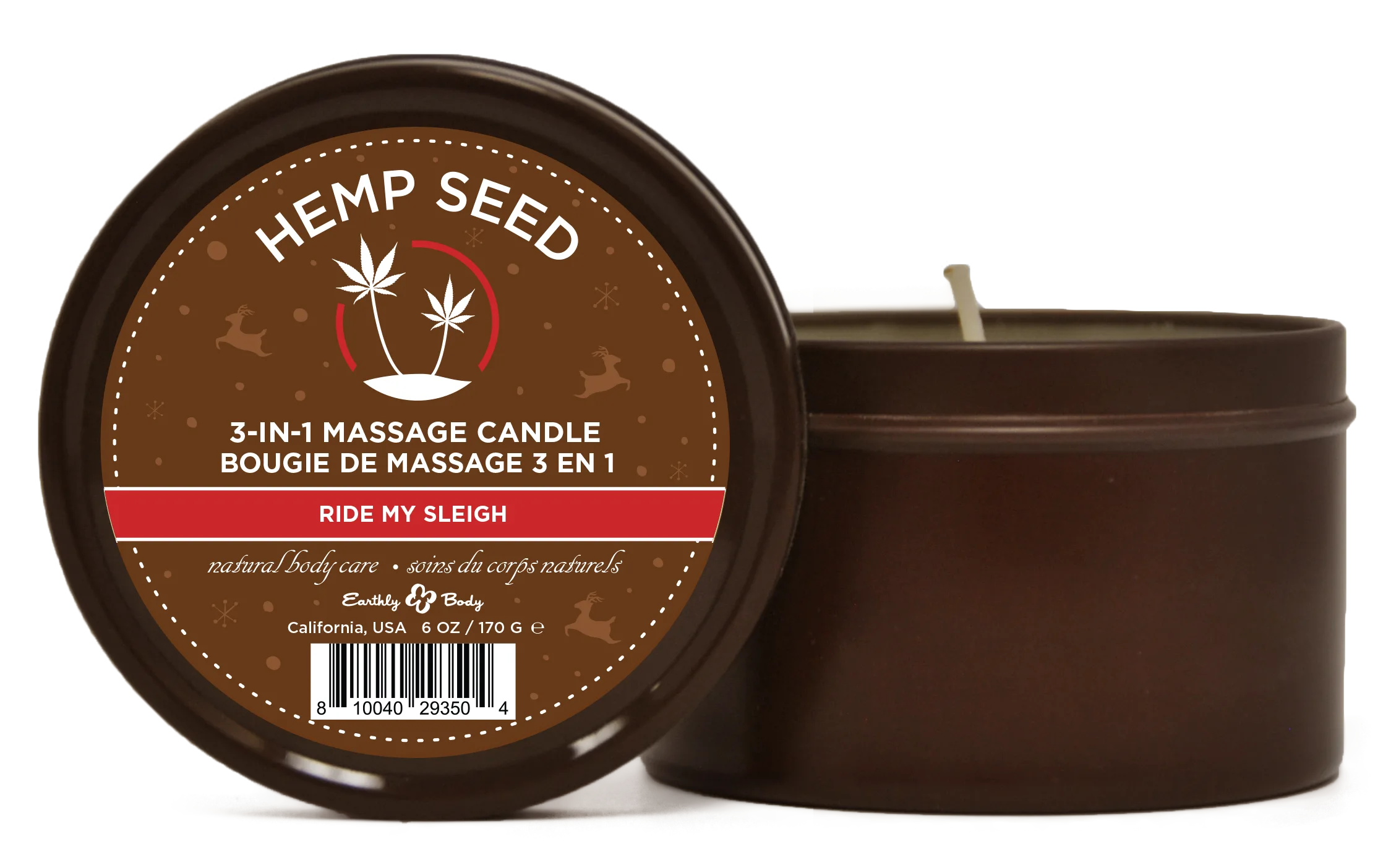 Specially formulated to melt a couple degrees above body temperature, the 3-in-1 massage candles dont just provide romantic light and fragrance, the melted wax can also be used as a moisturizer or warm massage oil. Hemp seed oil, the primary ingredient in these candles, has a fantastic slip factor for massage and, because it sinks into the lipid layer of the cells, skin is left soft and moisturized, without any greasy feel.