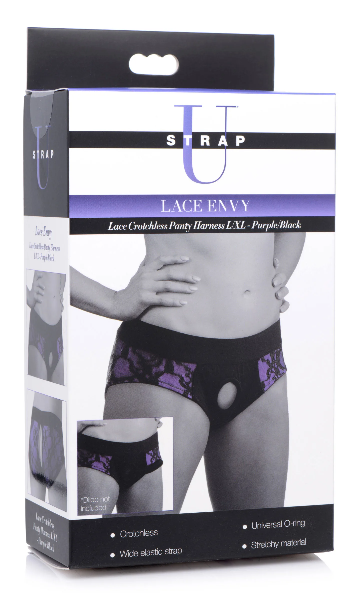 This lacey harness is crafted for functionality and comfort! The crotchless design keeps you ready for action when the mood to switch positions arises, allowing you and your lover to play with absolute freedom. The lingerie styling and universal O-ring let you get your strap-on in style!