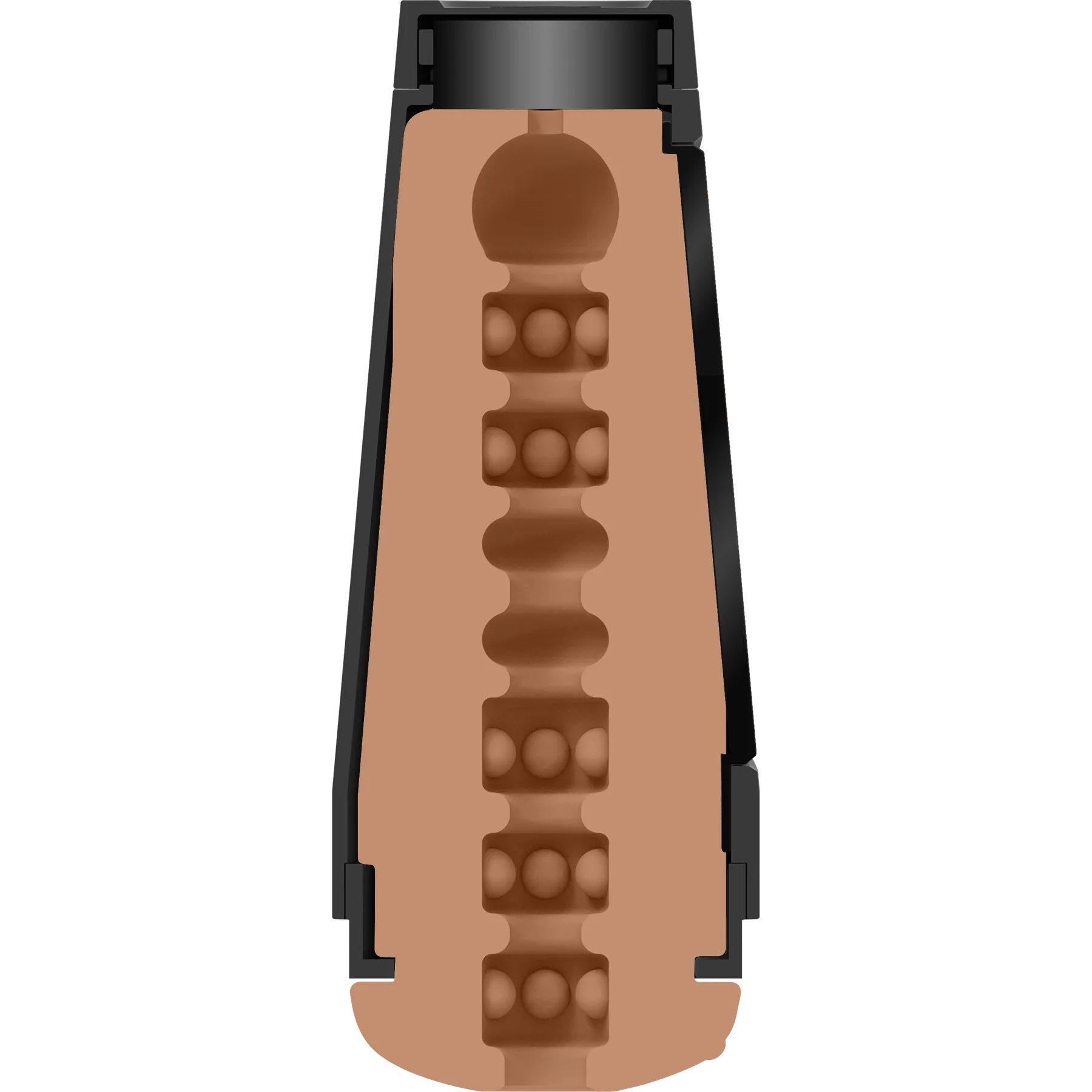 Doc Johnson’s Main Squeeze line puts the power in your hands thanks to it’s squeezable plate built into the hard cases that lets you control the pressure and tightness of each stroke. The base of the case can also be twisted to adjust suction strength.