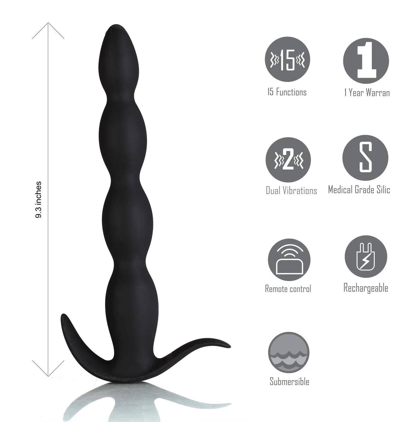28x Dark Chain Rechargeable Remote Silicone Sound - Black