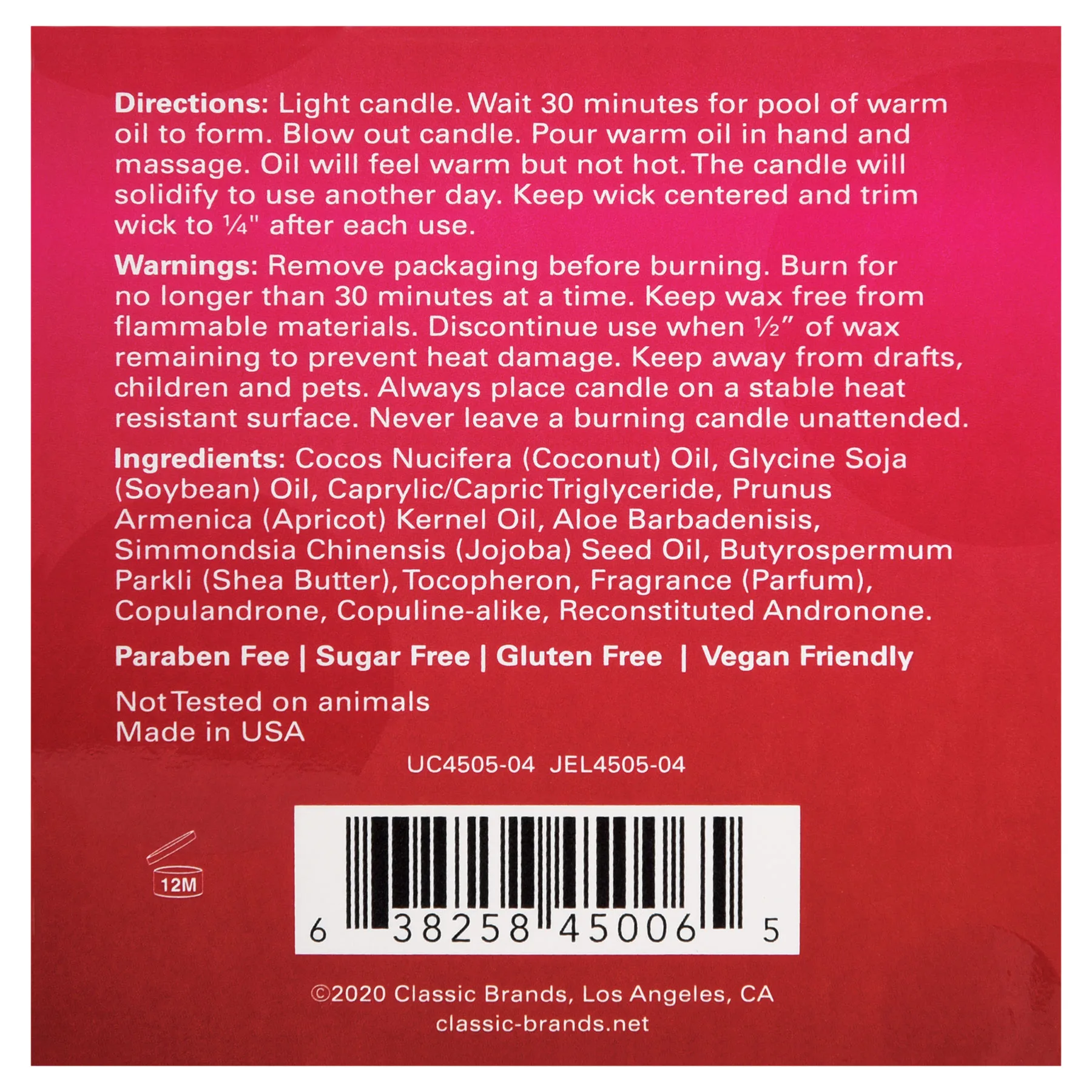 Set the mood you desire with this scented soy massage oil candle and let the exotic, fragrant oil take over.