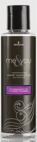 Relaxing and sensual pheromone infused luxury massage oil is made with a blend of body enriching moisturizers and natural botanical essential oils that will delight the senses and caress your body. Me and You Luxury Massage Oil also includes a special hyper-glide that lasts longer than typical massage oils so this magic moment will last all night.