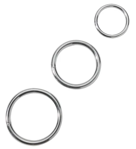 The largest of the three rings encircles the cock and balls while the second largest ring goes around the cock and the smallest of the three rings is for the balls.