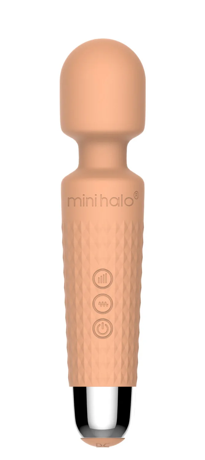 Mini Halo Peach Fuzz Wand Massager Rechargeable from Thank Me Now. 20 vibration patterns and 8 speed strengths to tailor your massage experience. These massagers may be small, but do not let that deceive you. You will be suprised how powerful these can be! Bendable neck for flexible massage action right where you need it. Special high strength motor provides exceptional power, yet quiet vibrations. Ultra soft, premium grade silicone for complete comfort. The Mini Halo is rechargeable and comes with a USB power cord with optional attachable plug in. These mini wands are water resistant. Made using body safe materials Phthalate free Silicone head, ABS plastic handle.