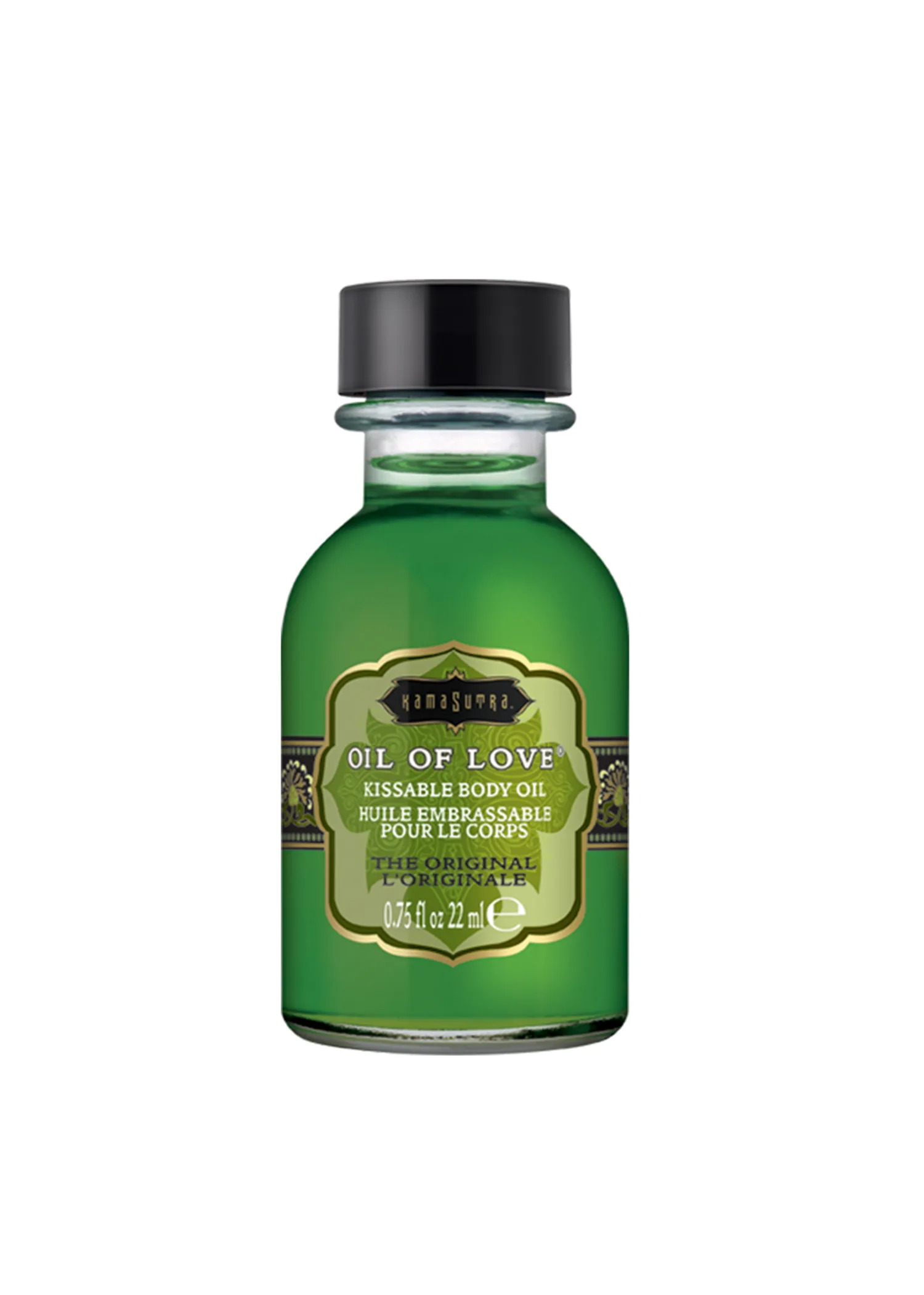 Oil of Love Original is Kama Sutra’s first product, with notes of creamy vanilla, warm chocolate and a hint of spicy cinnamon. Slippery to the touch, warm to the skin, and irrisistable to the tongue. The oil draws your lips with the delicate scent and sultry taste that will arouse your lover with a tingling glow.