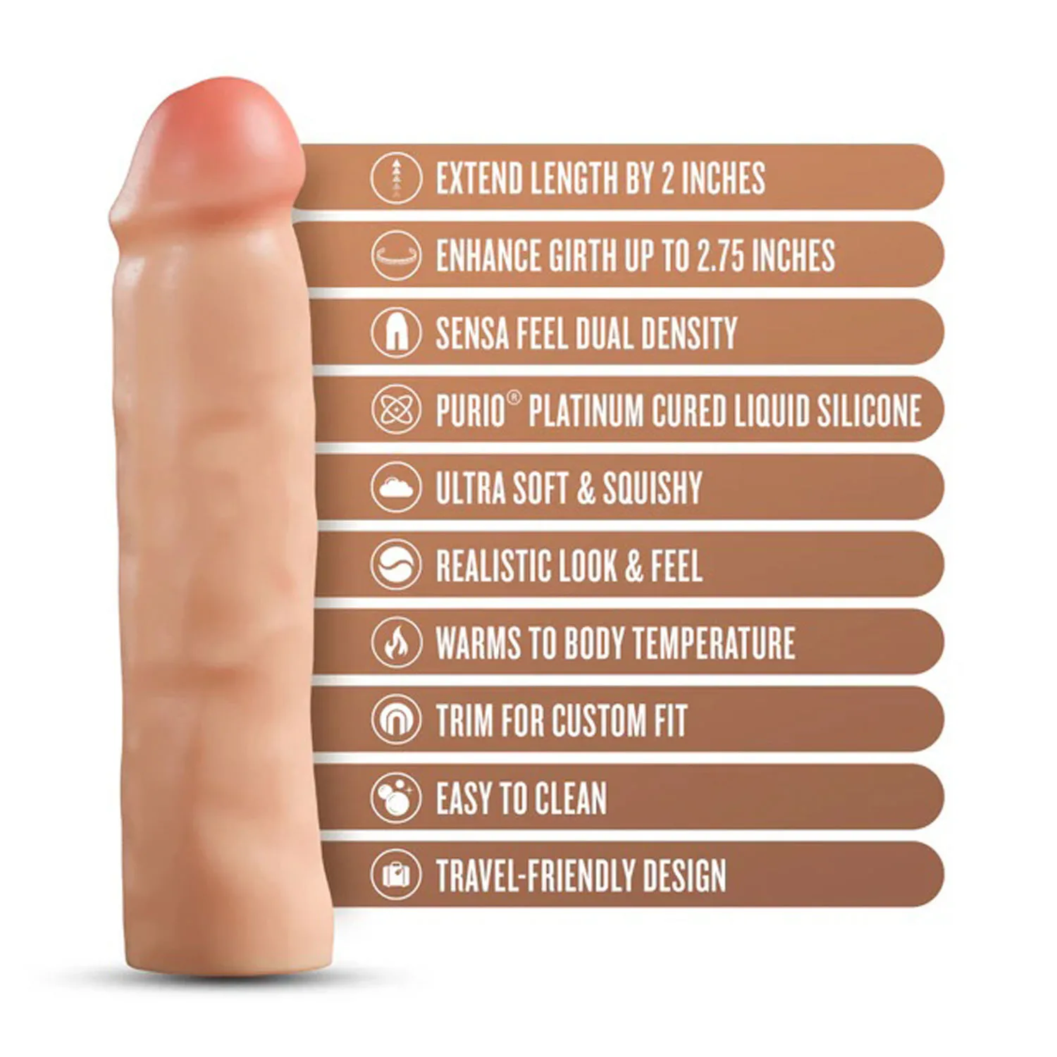 Maximize your potential with the Performance Plus Tenacity Penis Extender by Blush. Designed for those who demand perfection, this 8.5-inch extender enhances both length and girth, adding an impressive 2 inches in length and 1.5 inches in girth for a more commanding presence. Tenacity is crafted from Sensa Feel Dual Density Silicone, providing a realistic, lifelike touch thats soft on the outside and firm on the inside. The Purio liquid silicone outer layer is luxuriously soft and 100% body-safe for unparalleled pleasure. Built for durability and comfort, Tenacity offers a snug yet flexible fit that adapts to your body, enhancing every experience with intensified impact and control. Easily trim the end of the sleeve for a customized fit, ensuring youre always ready to perform at your best. Elevate your game and boost your power with renewed strength and Tenacity.