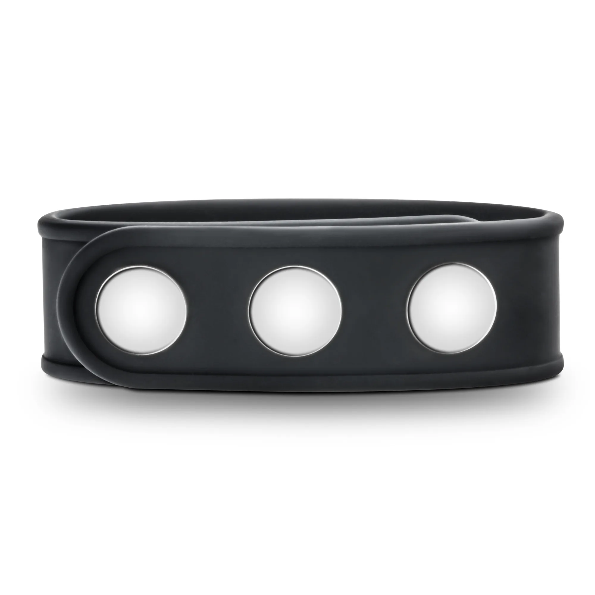 Extend your pleasure and your erectile power with this simple, smooth Silicone 3-Snap Cock Strap. Easy to put on, easy to release; simply snap it around the base of your cock. The flat, stretchy, comfortable, body safe silicone stays where you put it and holds your engorgement. The 3 snaps allow for universal fit and ensure both stamina and extended partner play Stay harder longer and enjoy a more intense orgasm. Nickle free hardware. Wash with warm, soapy water.