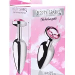 Spark your desire for decadent anal play with this beautiful Booty Sparks plug! Featuring a smooth metal finish in lightweight aluminum, it features a classic tapered shape and a pretty pink jewel at the base. The slim shaft will keep it from slipping out of place even during vigorous play. You will want to show off your new sparkling booty as you bend over and tease your lover. The nickel free aluminum alloy is nicely weighted and temperature sensitive for the perfect amount of sensation. When play is over, the non-porous material will clean easily without harboring any harmful bacteria. Make that booty sparkle!