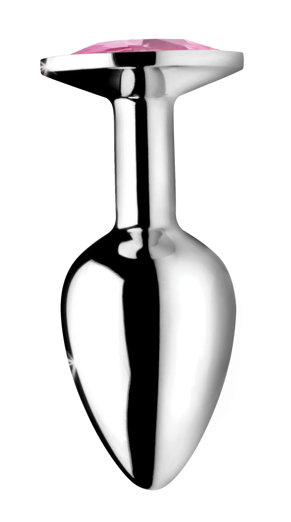 Spark your desire for decadent anal play with this beautiful Booty Sparks plug! Featuring a smooth metal finish in lightweight aluminum, it features a classic tapered shape and a pretty pink jewel at the base. The slim shaft will keep it from slipping out of place even during vigorous play. You will want to show off your new sparkling booty as you bend over and tease your lover. The nickel free aluminum alloy is nicely weighted and temperature sensitive for the perfect amount of sensation. When play is over, the non-porous material will clean easily without harboring any harmful bacteria. Make that booty sparkle!