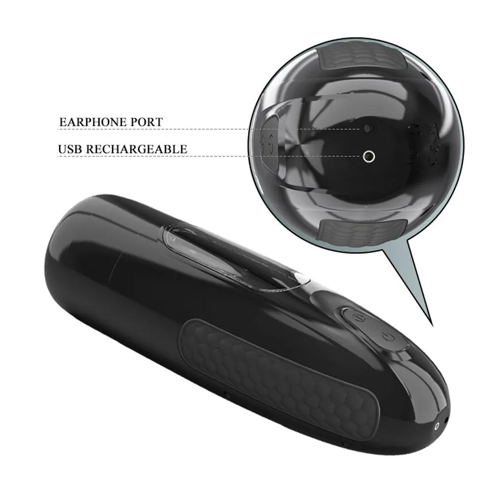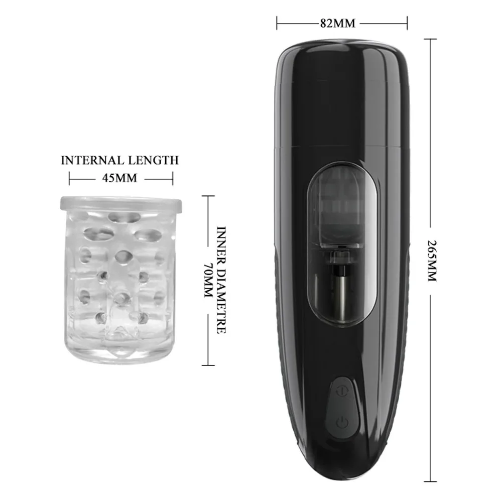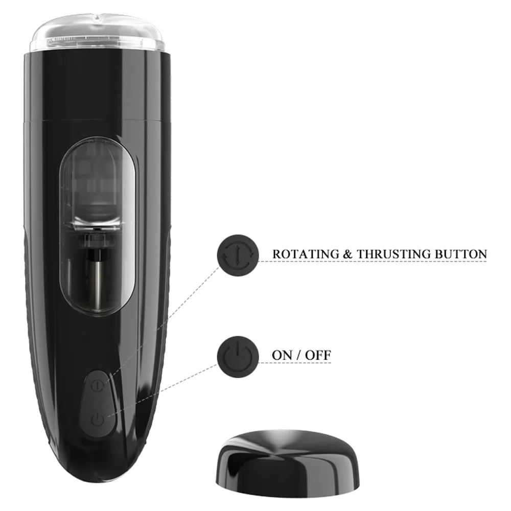 Experience powerfully intense climaxes with the Pretty Love Thrusting and Rotating Masturbator. The special thruster stimulates the upper, most sensitive part of your penis for out-of-this-world pleasure, taking you from initial arousal all the way to an explosive climax. A powerful motor expertly delivers 10 vibration modes with a memory function, offering a mix of intensity levels and rhythms, and a sexy voice to enhance the pleasure. A high-quality design from start to finish, the ergonomic shape feels perfect in your hand – your thumb rests comfortably over the power and control buttons, and the non-slip sides give you a tight grip. Give this masturbator a try and you will find your long-time solo-play companion!