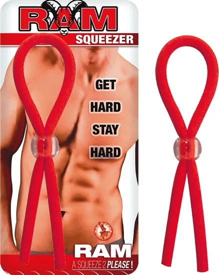 Get hard stay hard with the RAM SQUEEZER. This adjustable cockring hugs you tight and keeps you hard.