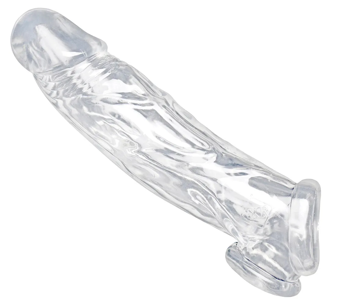 This veiny, lifelike penis enlarger offers instant results while remaining securely in place. It provides an instant boost to both girth and length, with a realistic textured outer sleeve that looks just like the real thing. The clear material allows you and your partner to see through to your excited shaft within. The firm, slickness inserts easily, while the devided shaft and ball chambers provide separation and security. Now you can enjoy enhanced performance and a tight fit, without any creams or schedules to follow. Just lube up and slip inside your new larger, harder, better cock!