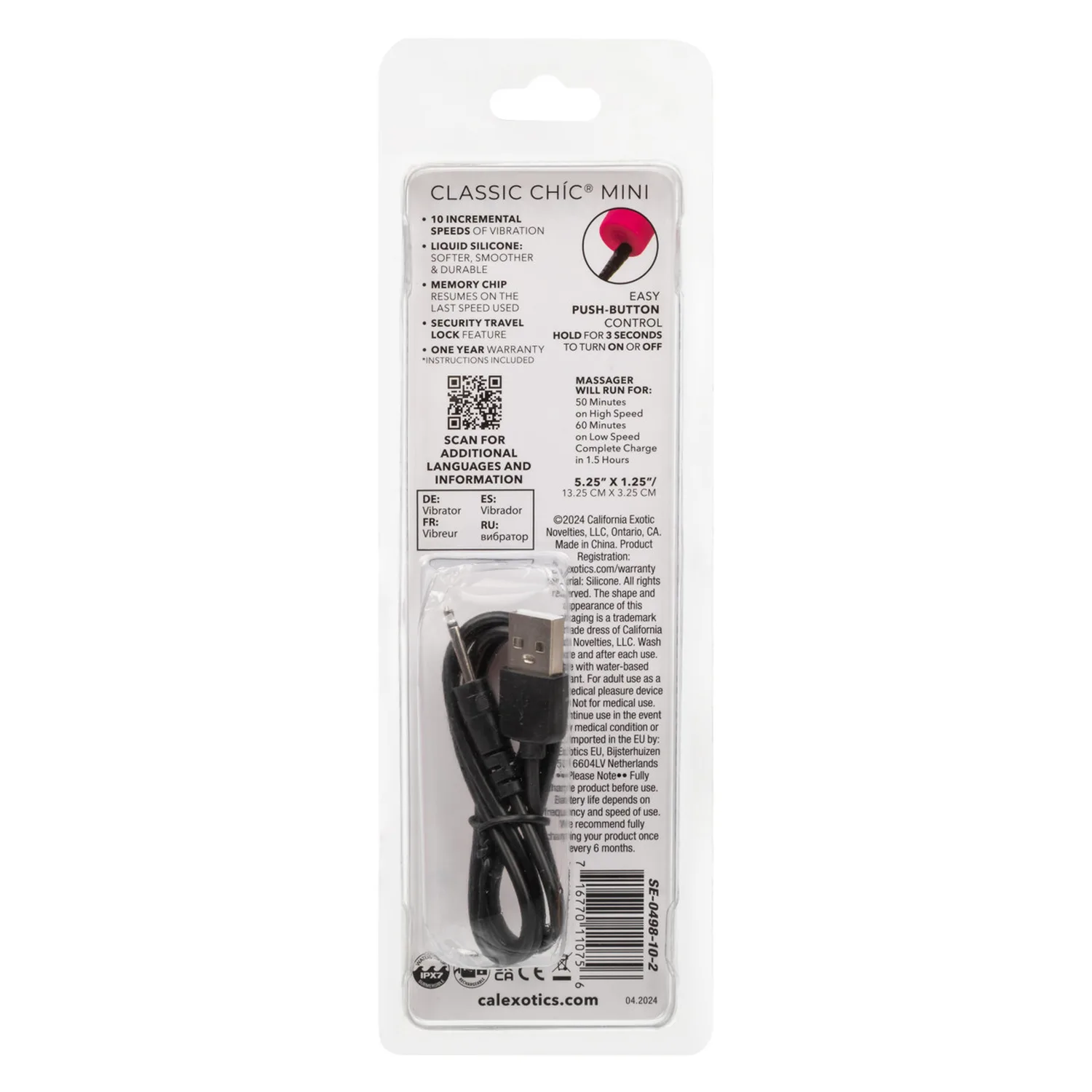Slip into a world of smooth sensations with the Rechargeable Classic Chic Mini, your sleek companion in the journey of intimate exploration. This liquid silicone mini massager, with its easy push-button operation, is a testament to both luxury and simplicity. It’s designed for those who appreciate the finer things in life, providing a soft, smooth, and utterly satisfying touch.