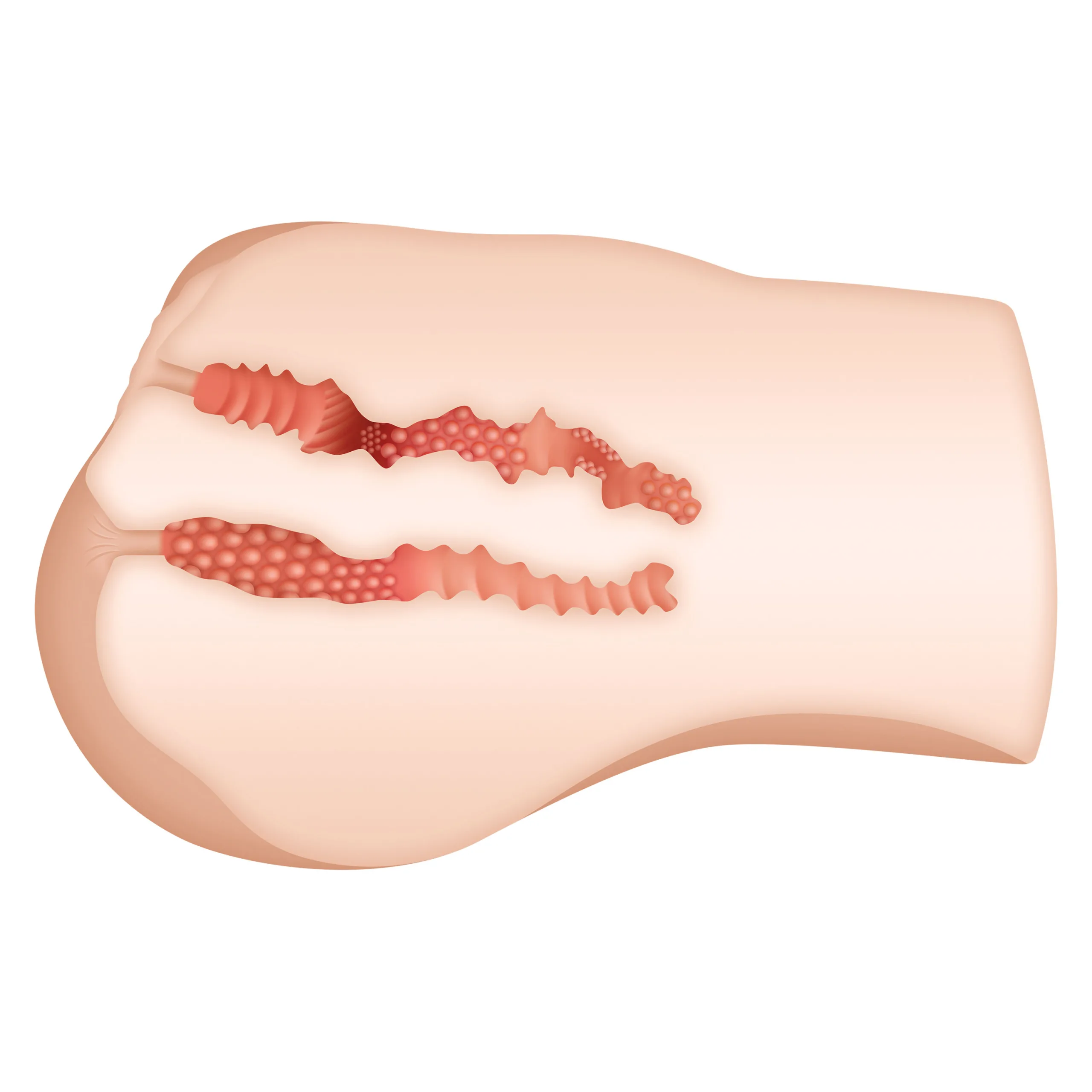 Hold on for the pleasure ride of your life with this fantasy-fulfilling double-entry stroker that gives you all the front door and back door access you can handle – with a life-like weight and feel that’s truly built to satisfy! Sexy high grips keep you on track and focused on the intense double-entry glory as you slip into a realistic vaginal channel and super-tight anal canal that stretch and move just like the real thing! Get inspired by the free downloadable movie of insatiable hardcore queen Riley Reid to make your fantasy even hotter.
