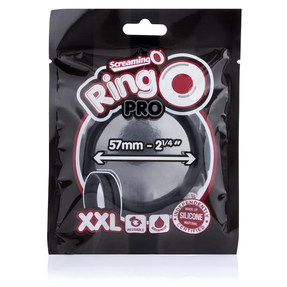 Enjoy super-stretchy erection enhancement with the strength of lab-tested True Silicone! RingO Pro XXL features a seamless stretch-to-fit design with a wide flat band that stays firm and secure for a longer-lasting experience. Made of 100% body-safe silicone with softer flexibility, RingO Pro XXL measures a 2.25 diameter for a more comfortable feel.