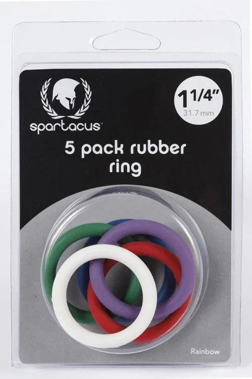 Four 1.25″ (3.17 cm) rubber cock rings. Various Colors.