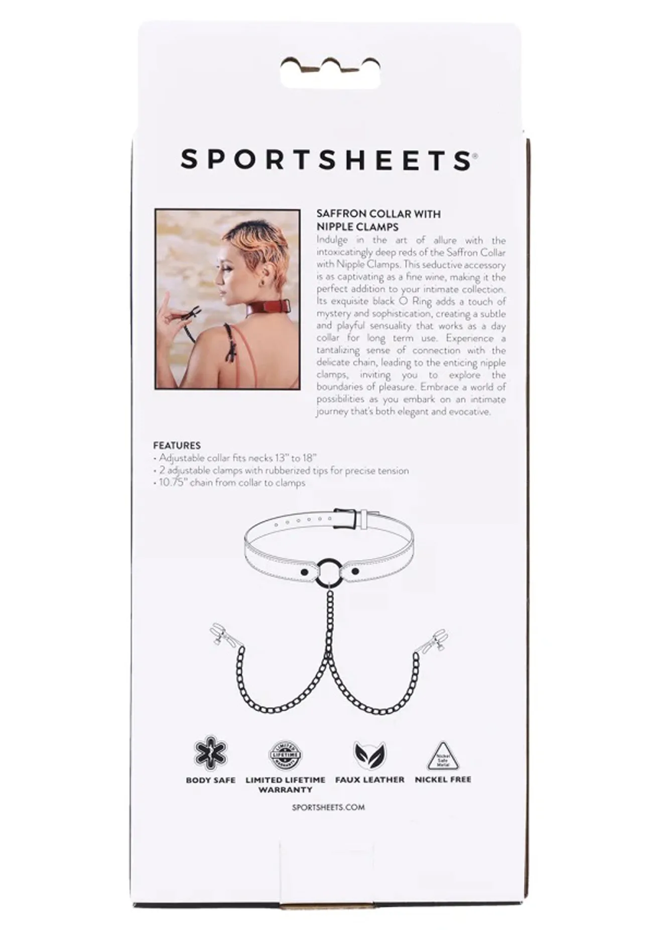 Indulge in the art of allure with the intoxicatingly deep reds of the Saffron Collar with Nipple Clamps. This seductive accessory is as captivating as a fine wine, making it the perfect addition to your intimate collection. Its exquisite black O Ring adds a touch of mystery and sophistication, creating a subtle and playful sensuality that works as a day collar for long term use. Experience a tantalizing sense of connection with the delicate chain, leading to the enticing nipple clamps, inviting you to explore the boundaries of pleasure. Embrace a world of possibilities as you embark on an intimate journey that’s both elegant and evocative.