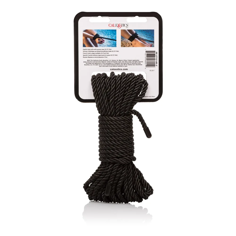 Give into to your wild side and get creative with CalExotics Scandal Rope. The award-winning Scandal collection brings you 32 feet of sensationally silky rope that lets you dive deep into endlessly creative restraint play and bondage sex. Give yourself over to enhanced pleasure and elevated arousal with each wrap of this slender, multi-talented rope. Use to bind wrists, wrap around ankles, create naughty dcor or explore uniquely sexy outfits for kinky and fun fetish sex. The silky rope is ideal for couples looking to experiment with Shibari, restraint play and sexual bondage play. Take your fantasies to the next level and get scandalous with the endlessly fun Rope sex toy.