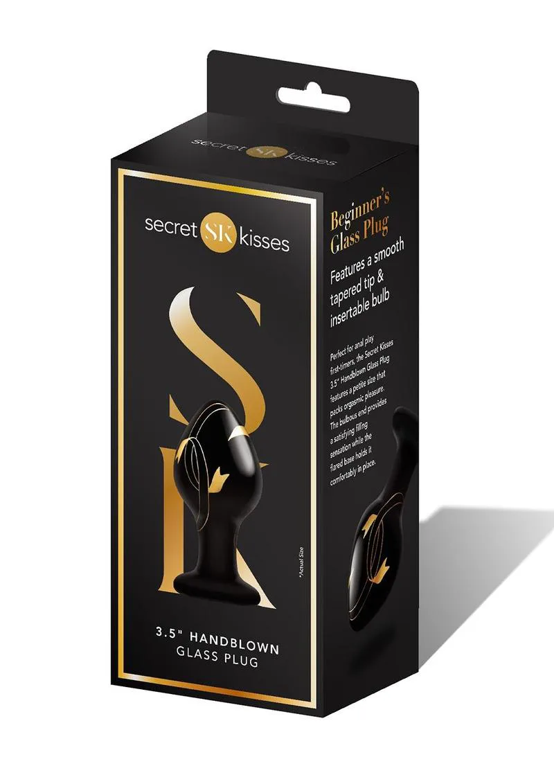 Perfect for anal play first-timers, the Secret Kisses 3.5 (8.89 cm) Handblown Glass Plug features a petite size that packs orgasmic pleasure. The bulbous end provides a satisfying filling sensation while the flared base holds it comfortably in place.