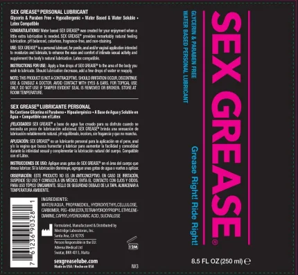 Sex Grease Water Based Personal Lubricant 8.5 fluid ounces from Westridge Labs. Grease right! Ride right!