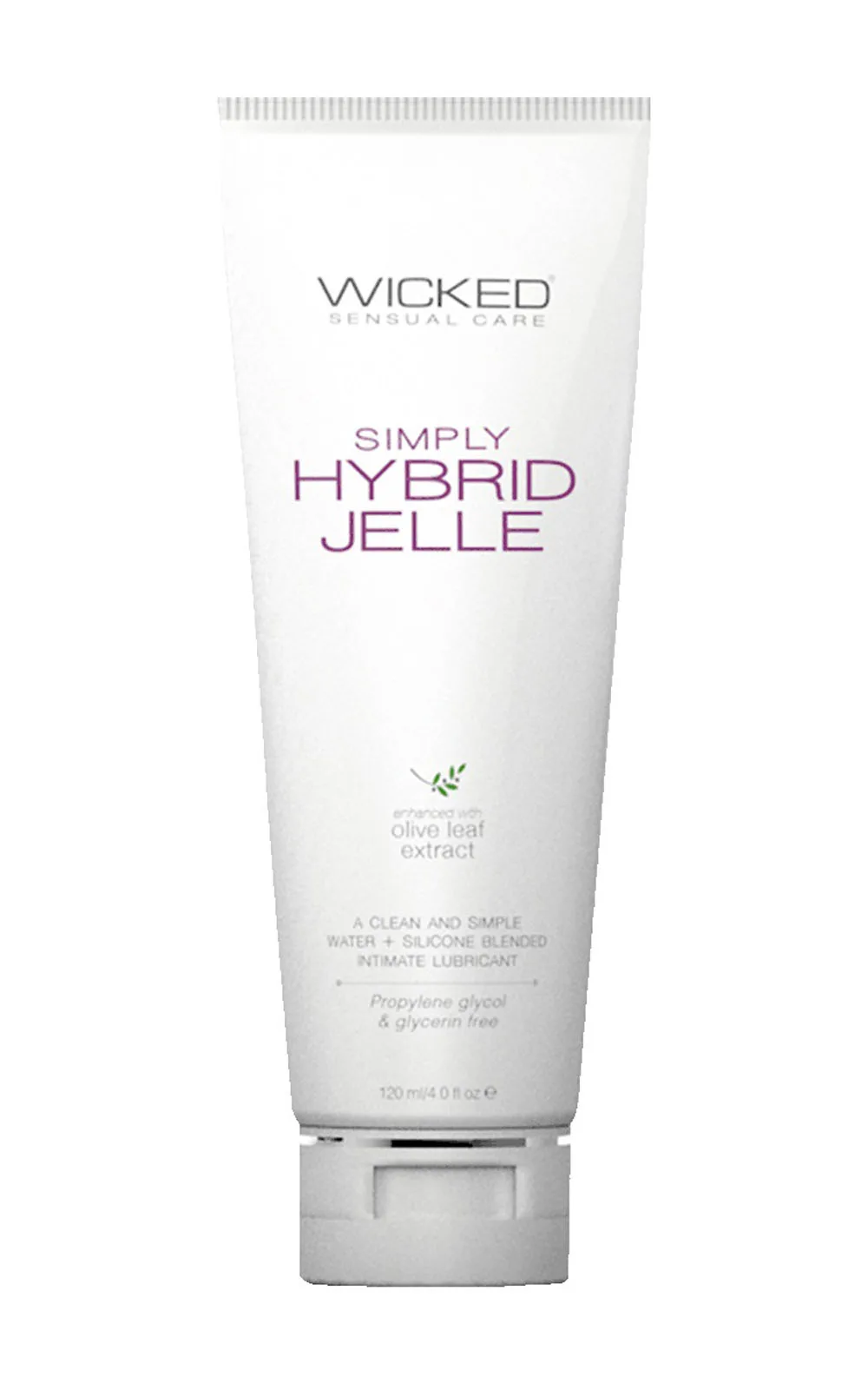 Simply Hybrid Jelle is a clean, premium hybrid lubricant that is rich and ultra thick, with extra body for added cushion and unsurpassed glide. Wicked’s signature antioxidant-rich ingredient, Olive Leaf Extract, enhances this formula with its moisturizing and biostatic properties. Free of Glycerin, Propylene Glycol, and Parabens, Simply Hybrid Jelle is also vegan and cruelty free. This is a perfectly blended hybrid formula that provides added glide and pleasure for all types of play. When you want a clean lube…do it simply.