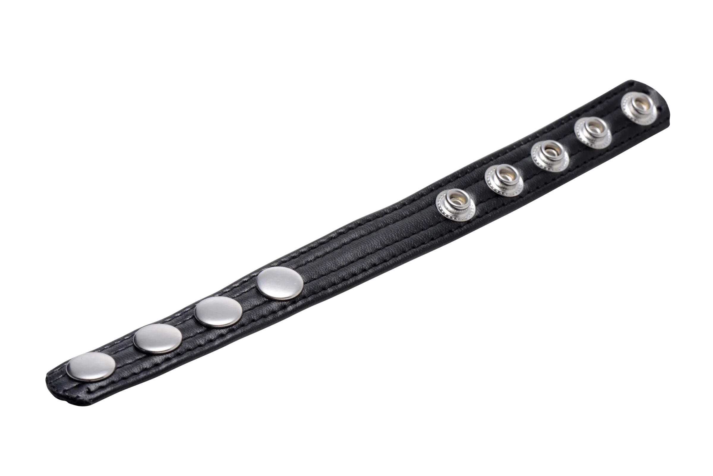 Maintain a harder, stronger, and more sensitive erection when you wrap this snap-on cock ring around your cock and balls! Restrict blood flow by tightening this comfortable and attractive strap around your package, creating a bulging hard-on that will last through your most tantalizing endeavors. Solo or with a partner, you will love the enhanced sensation of every stroke, thrust, suck, and fuck! When you are ready to ejaculate, just release the snap to