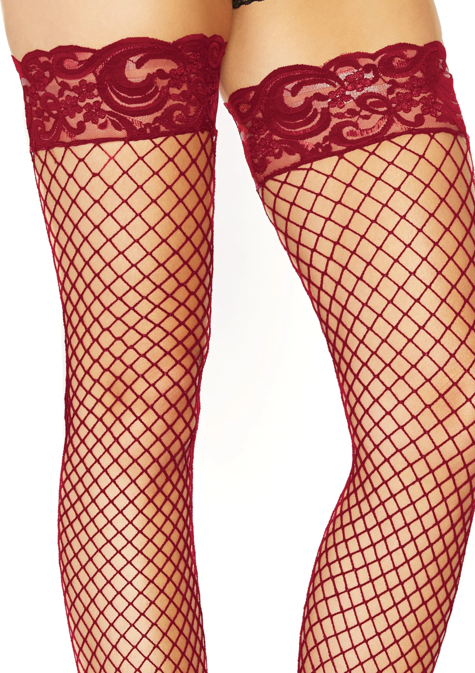Stay Up Fishnet Thigh Highs – One Size – Burgundy