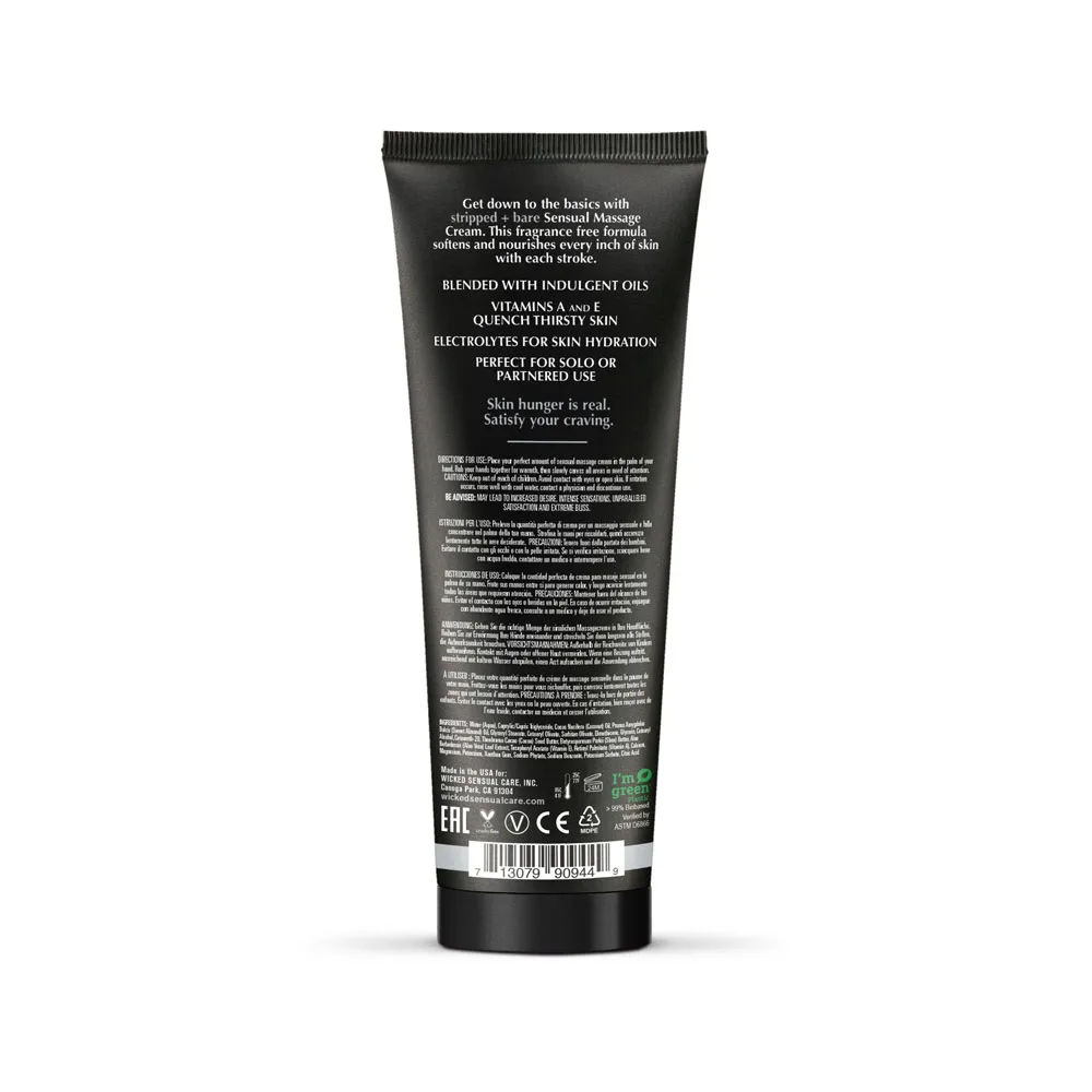 Get down to the basics with stripped and bare Sensual Massage Cream. This fragrance free formula softens and nourishes every inch of skin with each stroke.