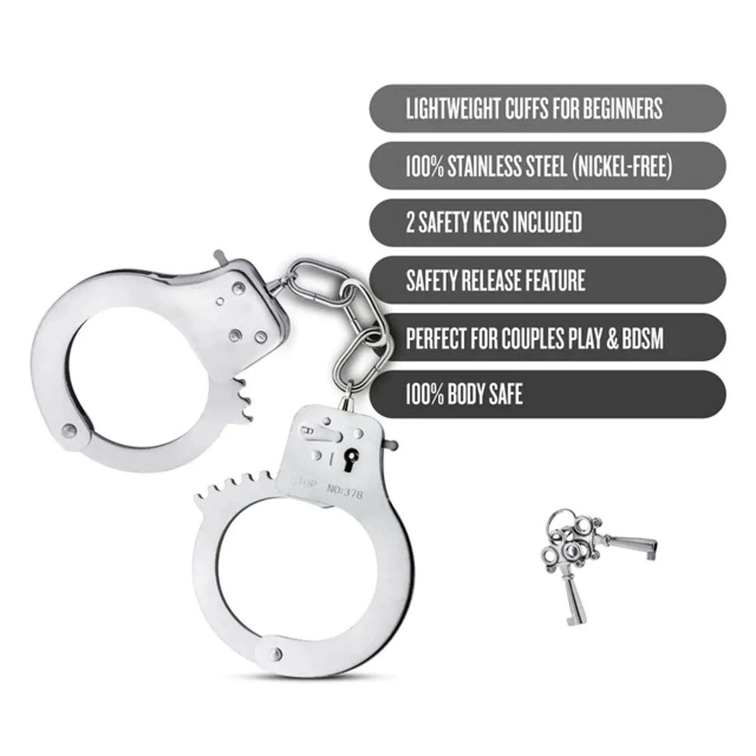 Temptasia Beginner Cuffs elevate your bondage play with style and comfort. Perfect for BDSM newcomers, these cuffs blend luxury with sensuality, enhancing your most passionate moments. The adjustable design fits all wrist sizes, featuring 2 matching keys and a safety release lever for easy escape. Made from 100% body-safe stainless steel, these lightweight cuffs are gentle on the skin. Add a removable faux fur for a glamorous touch to any encounter. Whether you’re taking charge or surrendering, Temptasia Beginner Cuffs are a must-have for all BDSM explorations.