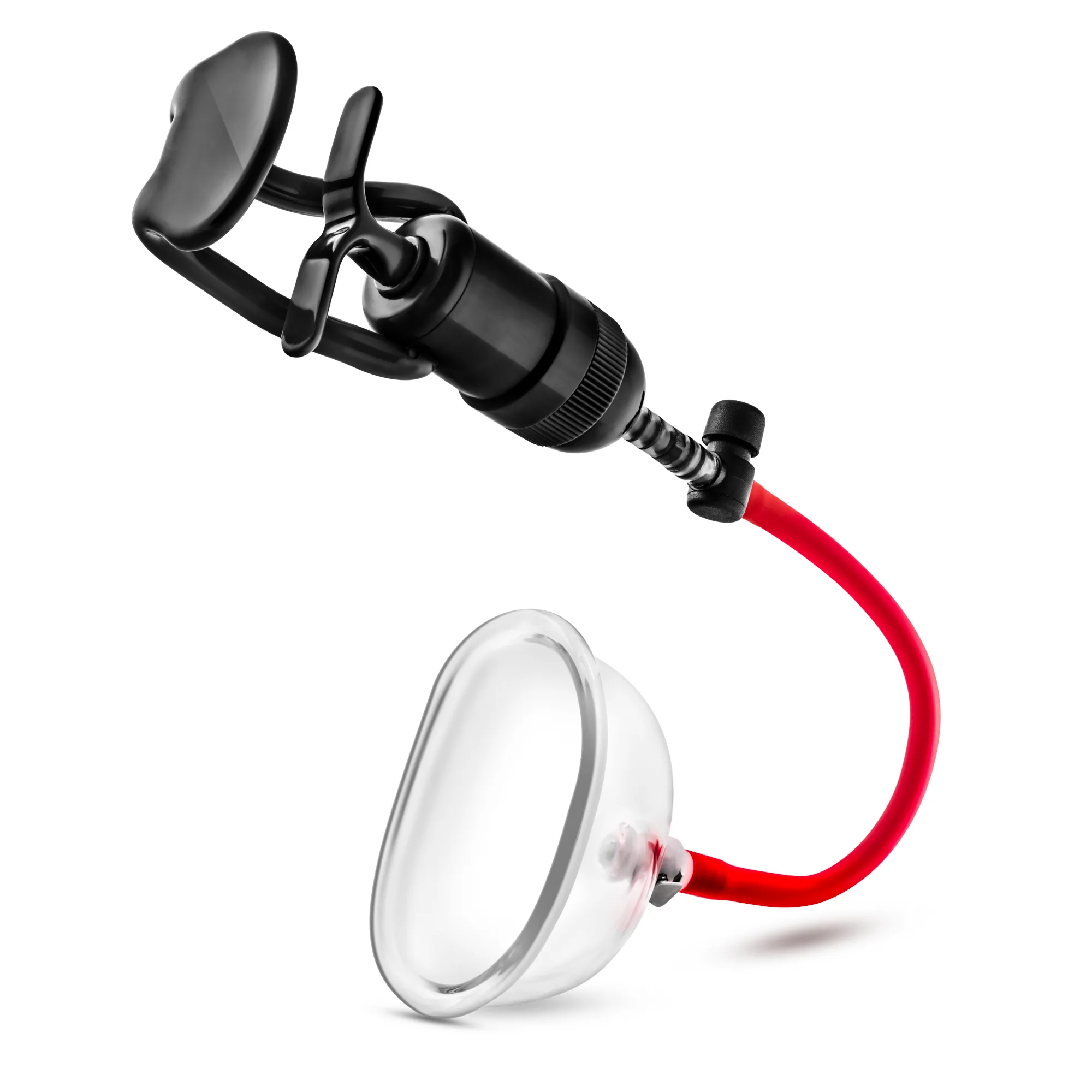 To use, place the hood over the labia. Pull on the trigger to create the desired suction. The crystal clear acrylic hood allows you to watch as you play. The latch featured at the top of the hood allows you the option to disconnect the pump while maintaining pressure in the hood.