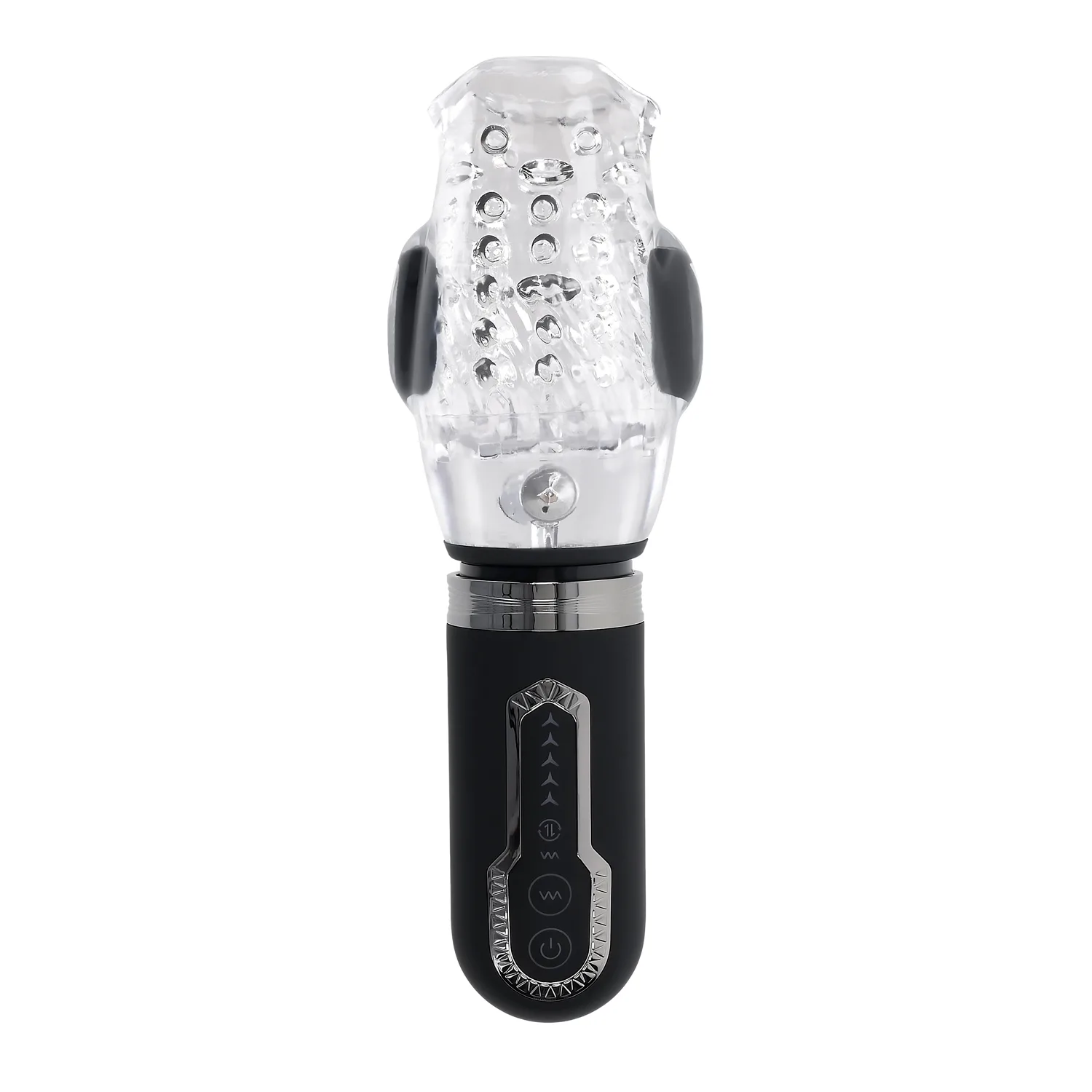 Experience the triple ecstasy of a thrusting, spinning, vibrating stroker. Grab the stylish matte handle and ease into the mouth-shaped entry that quickly envelopes you in a soft and stretchy, tight nubbed channel. Use the ergonomic control panel to operate each powerful motor separately, navigating between vibration, thrust and spin or all three at once for the ultimate fantasy fulfillment.