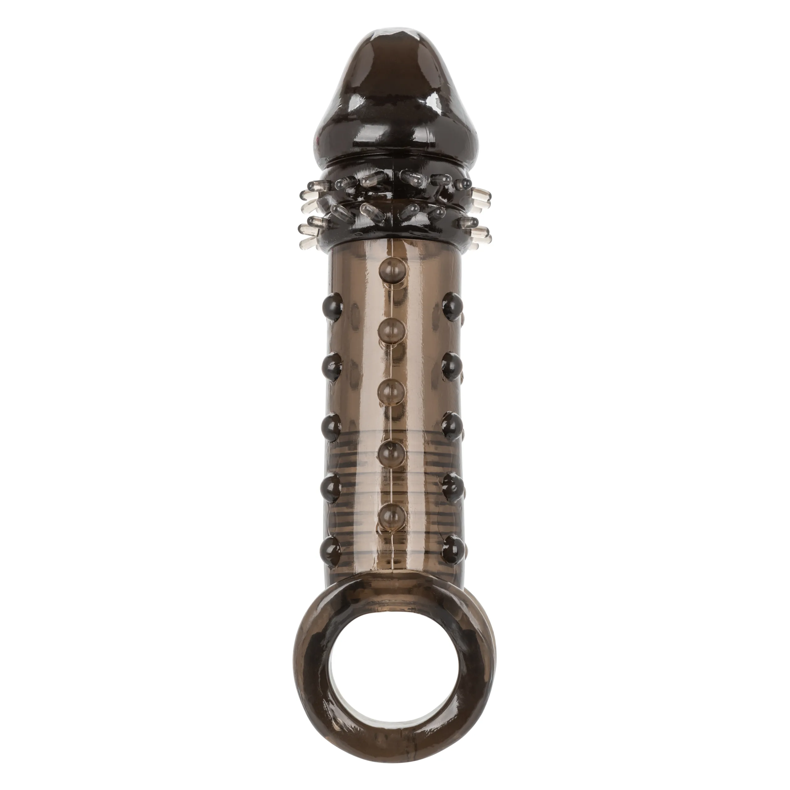 Indulge in you and your partner’s mutual satisfaction with the powerful Ultimate Stud Extender male enhancer. While the closed-end sleeve suction and ribbed chamber thrill you, the added girth, thrilling studded texture and 2 inches of length will leave your partner shaking. The built-in scrotum strap and thick sleeve provide added erection support and increased stamina to prolong and intensify pleasure for any couple. Step up your pleasure and never settle for less when it comes to size, the super-stretchy extender with supportive scrotum strap will have you and your lover craving more, more, more.