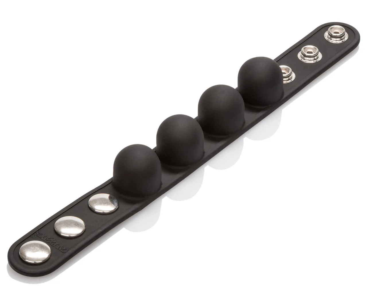 Maximize your orgasmic pleasure with the Silicone Tri-Snap Scrotum Support Ring. The comfortable to wear, easy to use erection enhancer is designed to extend your pleasure, support stamina, and maintain a rock hard erection. The super stretchy, fully adjustable cock ring makes a great addition to an erotic toy collection, and is suitable for first time and experienced users The discreet and durable, medium sized ring is made from soft, thick and ultra stretchy phthalate free, unscented silicone, and ensures a comfortable, fully adjustable fit. The tri-snap design features heavy-duty, nickel-free hardware and a sensually smooth, stretchy built-in support ring. Increase the tantalizing tingles and sensations by using a quality lube. Before and after play, clean the support ring with mild soapy water or a toy cleaner spray.