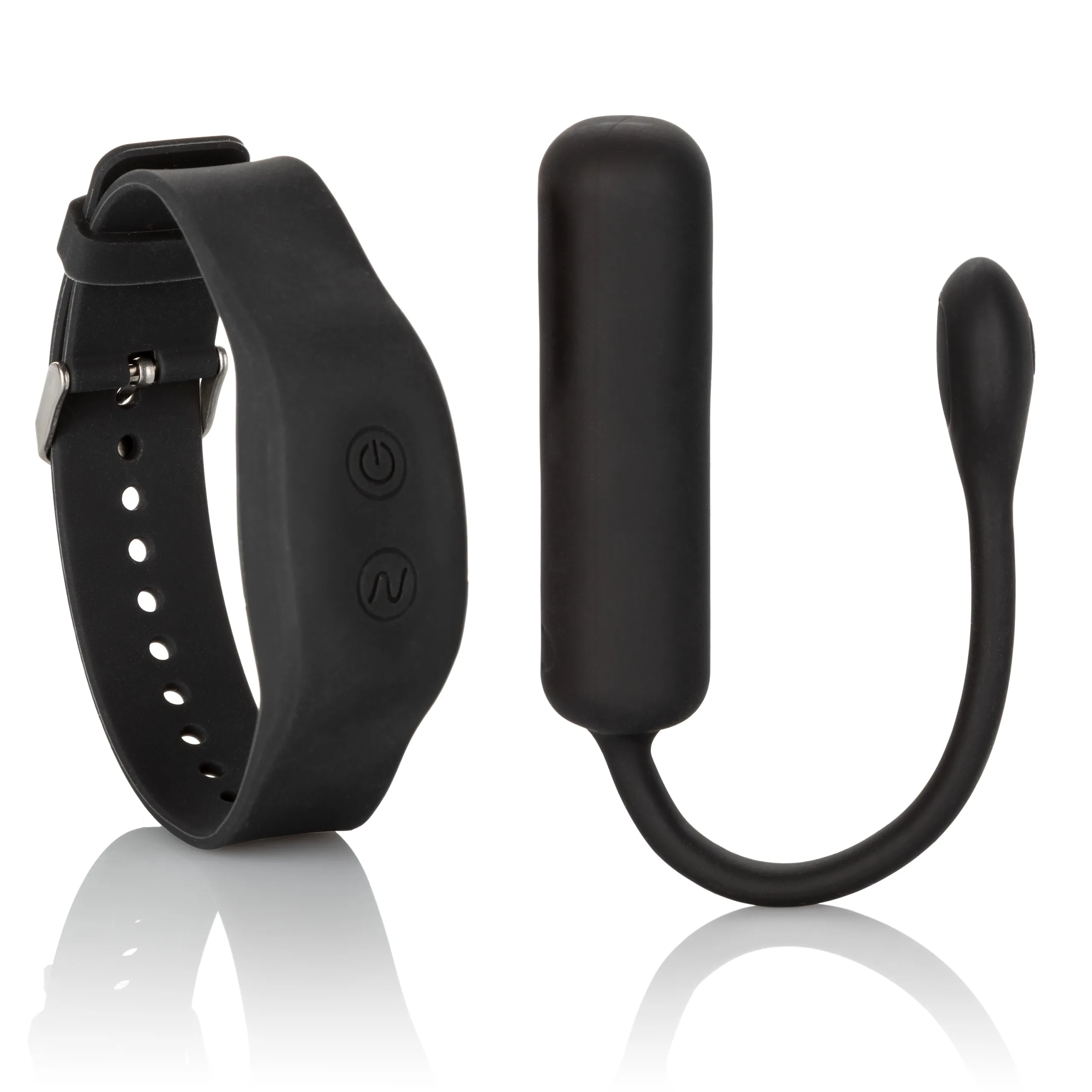 The Wristband Remote Petite Bullet is a powerfully mini vibrator paired with a playfully discreet wristband controller for adventurous pleasure seekers. The stylish, yet discreet wristband controller makes it easy for you or your lover to control vibration intensity with the touch of a button. Whenever or wherever passion takes you, this passionate panty vibrator’s 32.5-foot radius range and 12 intense functions of vibration are ready for playtime.