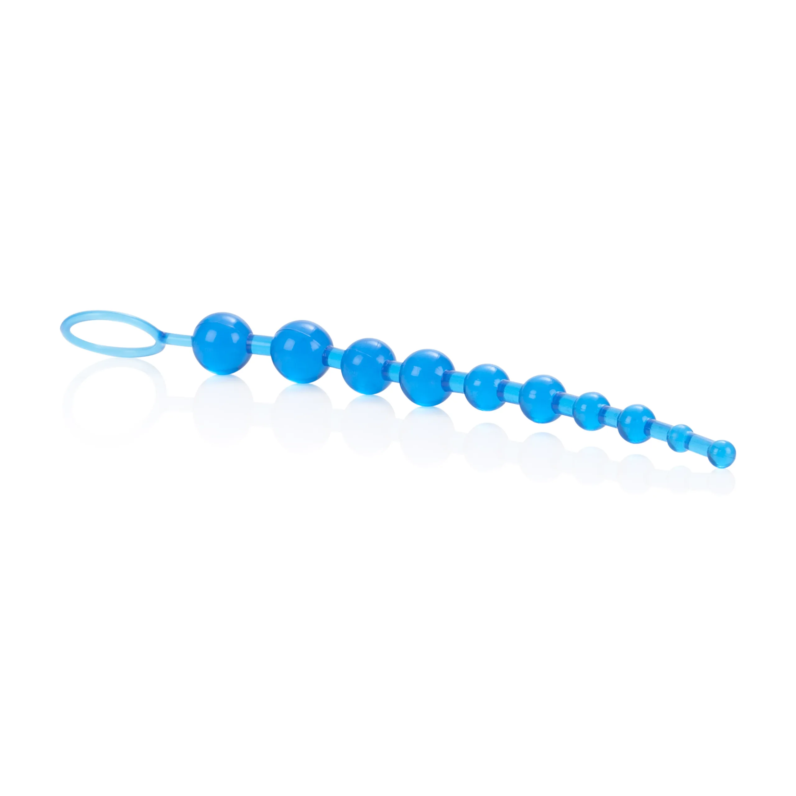 The exotic beads are made from unscented, phthalate free PVC and have a durable, smooth jelly finish. The 10 graduated beads are joined by a pliable translucent cord. A retrieval ring provides easy insertion and removal manipulation. For ultimate comfort and increased sensitivity and pleasure, always use a quality lube with this toy. The beads are great for spontaneous and adventurous stimulation satisfaction. The graduated beads are designed for anal insertion one bead at a time and increase the seductive sensitivity with every larger sized bead that is inserted. Slow insert the smallest bead, and add further beads to intensify the orgasmic thrills and enjoyment. You can insert as many beads as you like.